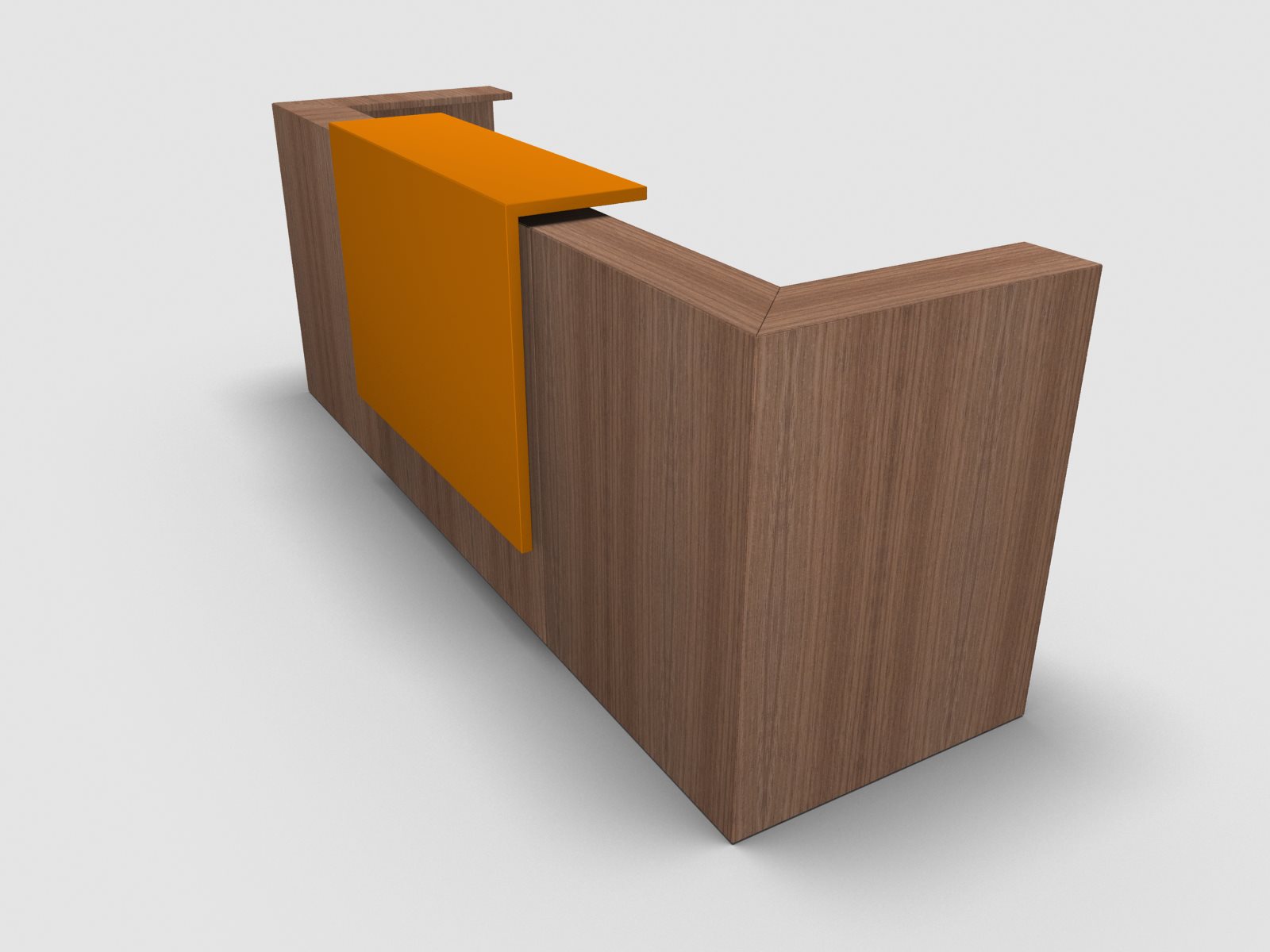 Quadrifoglio Z2 Empfangstheke C05 Walnuss 285cm Blende:Lack/orange Gestell:silbern