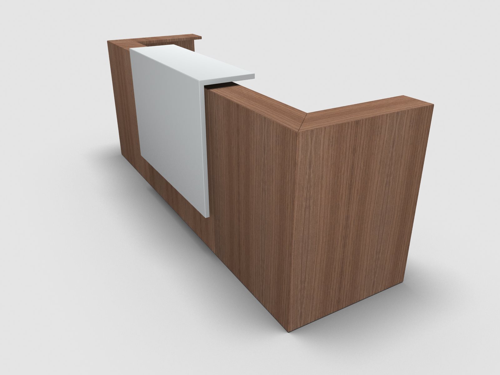 Quadrifoglio Z2 Empfangstheke C05 Walnuss 285cm Blende:Lack/weiss Gestell:silbern