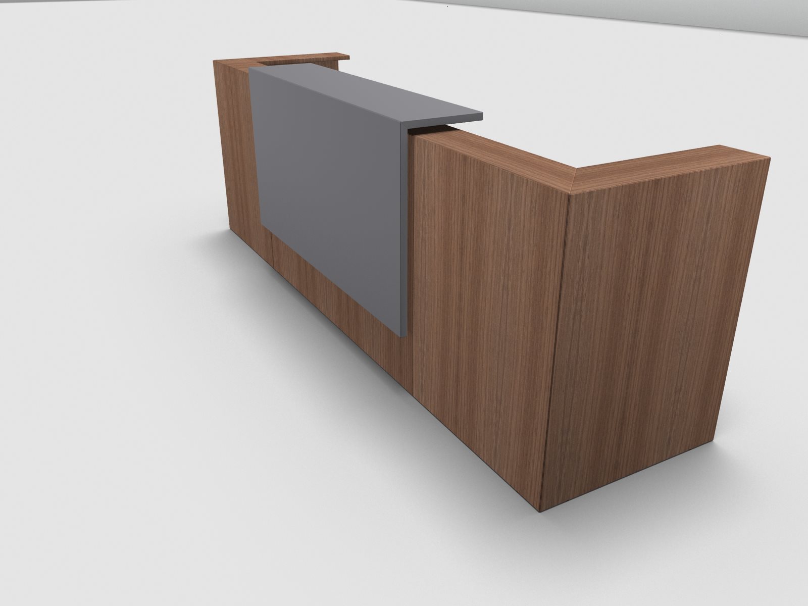 Quadrifoglio Z2 Empfangstheke C07 Walnuss 325cm Blende:Lack/grau Gestell:silbern
