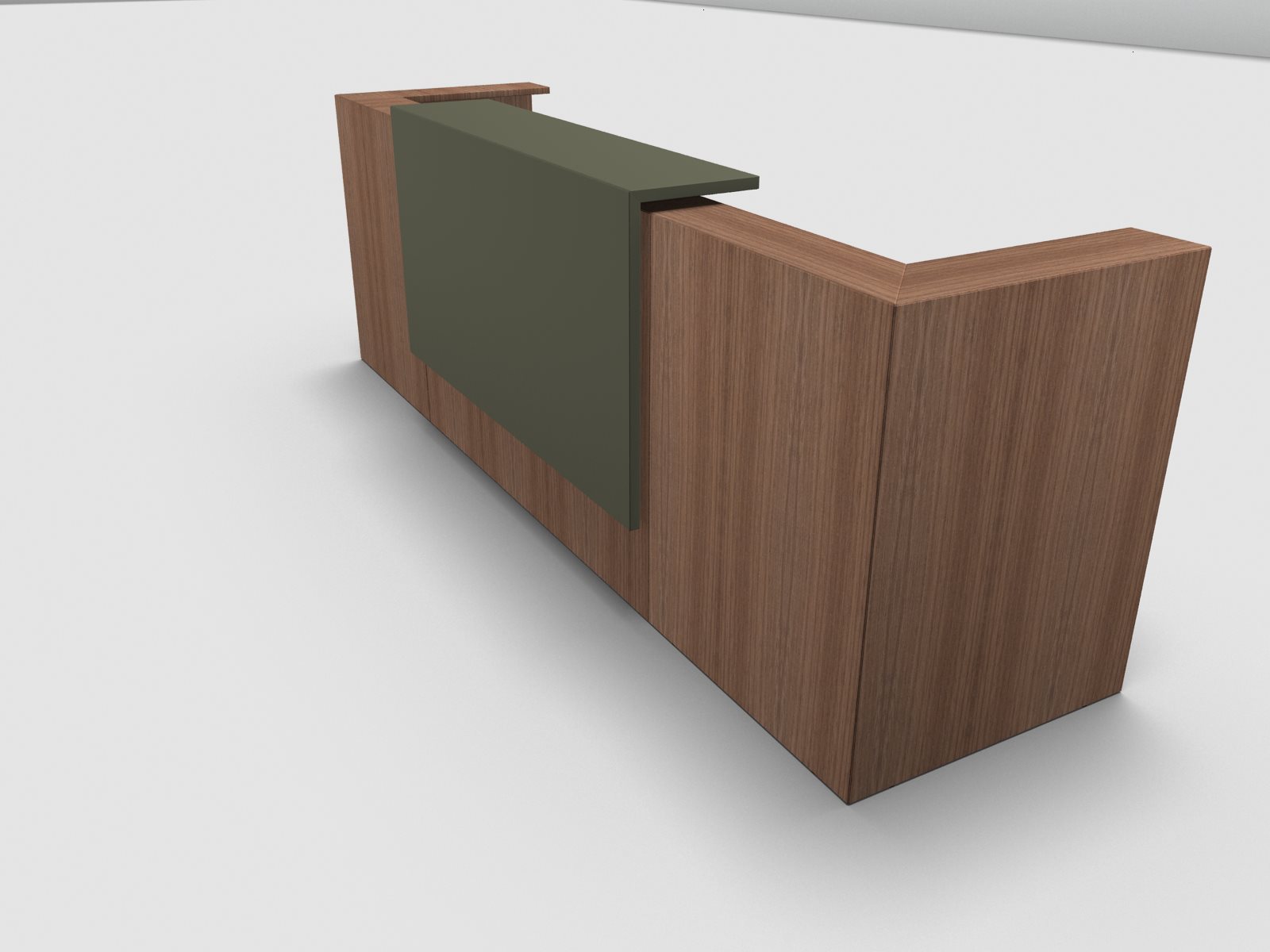 Quadrifoglio Z2 Empfangstheke C07 Walnuss 325cm Blende:Lack/gruen Gestell:silbern