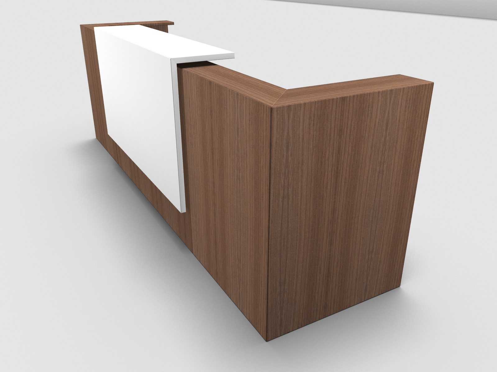Quadrifoglio Z2 Empfangstheke C07 Walnuss 325cm Blende:weiss Gestell:silbern