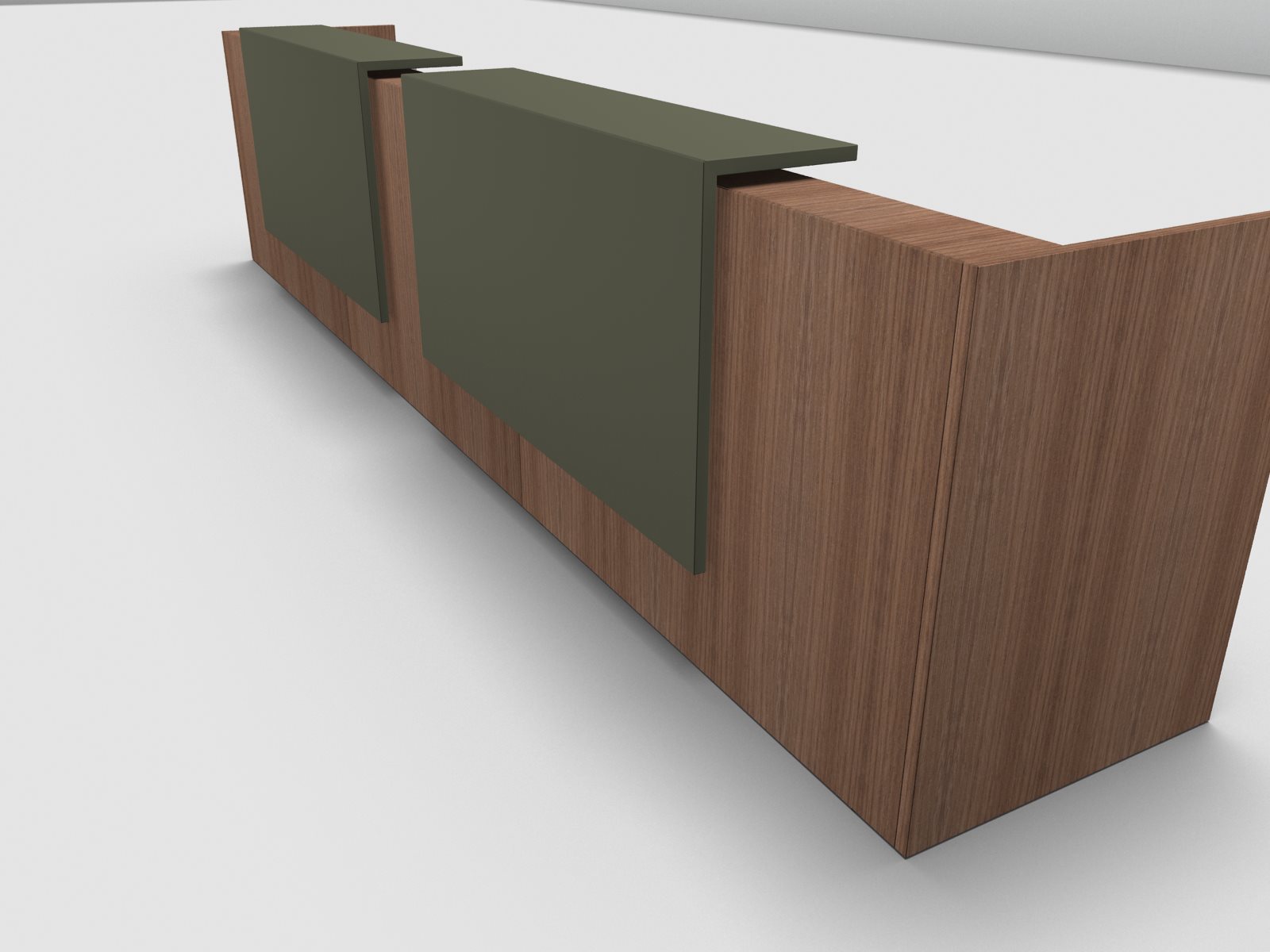 Quadrifoglio Z2 Empfangstheke C12 Walnuss 486cm Blende:Lack/gruen Gestell:weiss