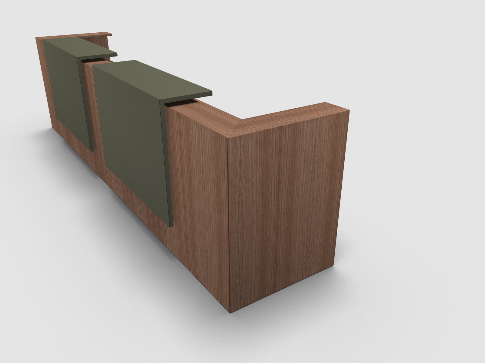 Quadrifoglio Z2 Empfangstheke C20 Walnuss 405cm Blende:Lack/gruen Gestell:silbern
