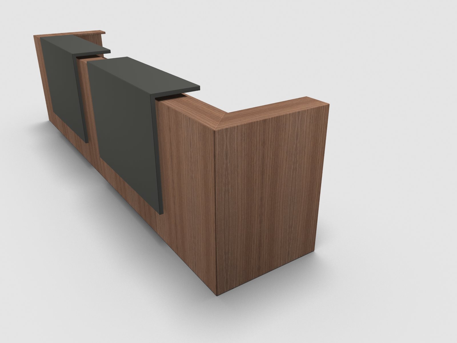 Quadrifoglio Z2 Empfangstheke C20 Walnuss 405cm Blende:Lack/umbra Gestell:silbern