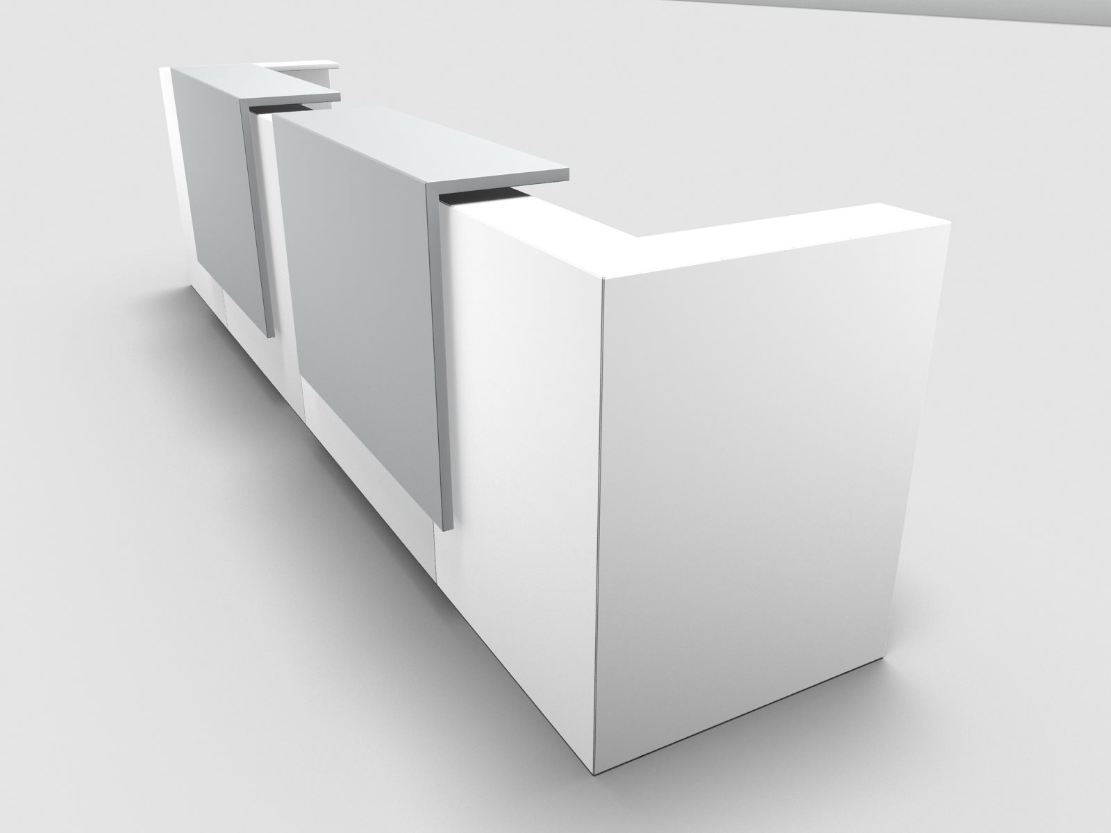 Quadrifoglio Z2 Empfangstheke C20 weiss 405cm Blende:Lack/grau Gestell:silbern