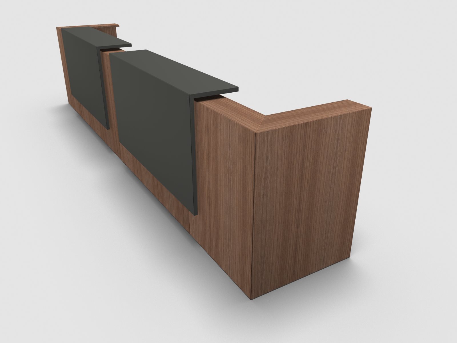 Quadrifoglio Z2 Empfangstheke C22 Walnuss 485cm Blende:Lack/grau Gestell:silbern