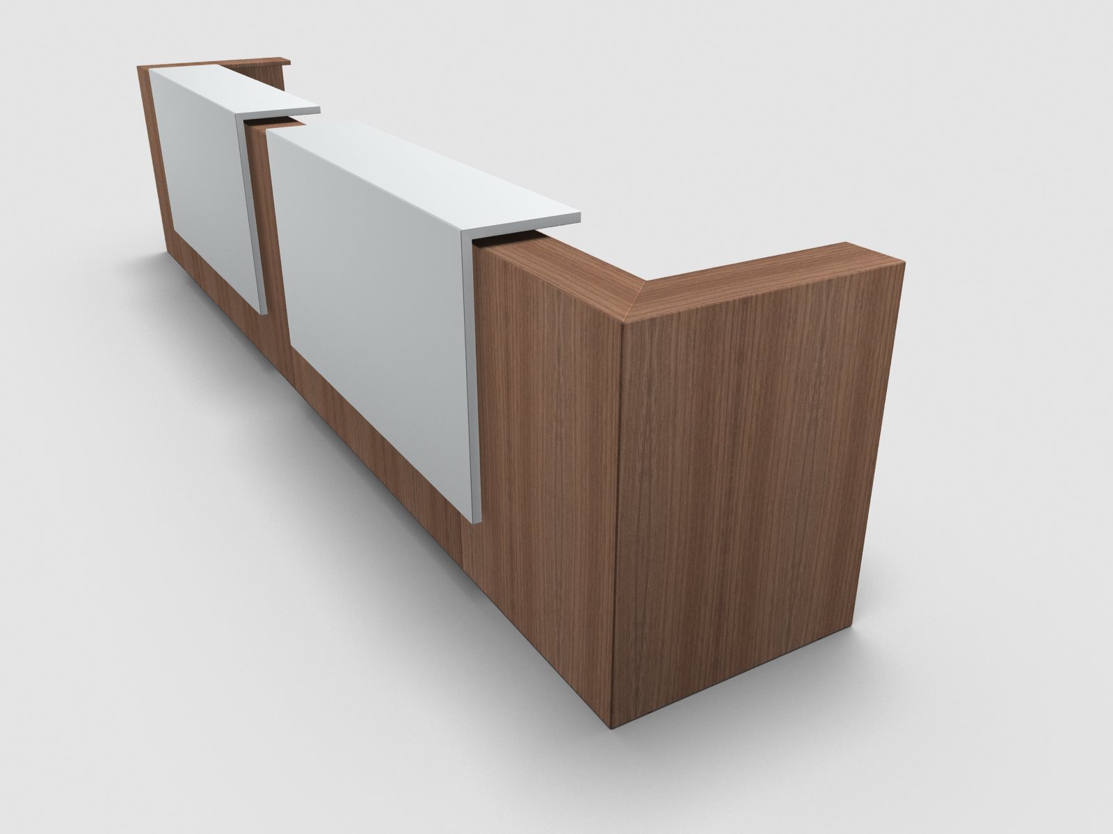 Quadrifoglio Z2 Empfangstheke C22 Walnuss 485cm Blende:Lack/weiss Gestell:silbern