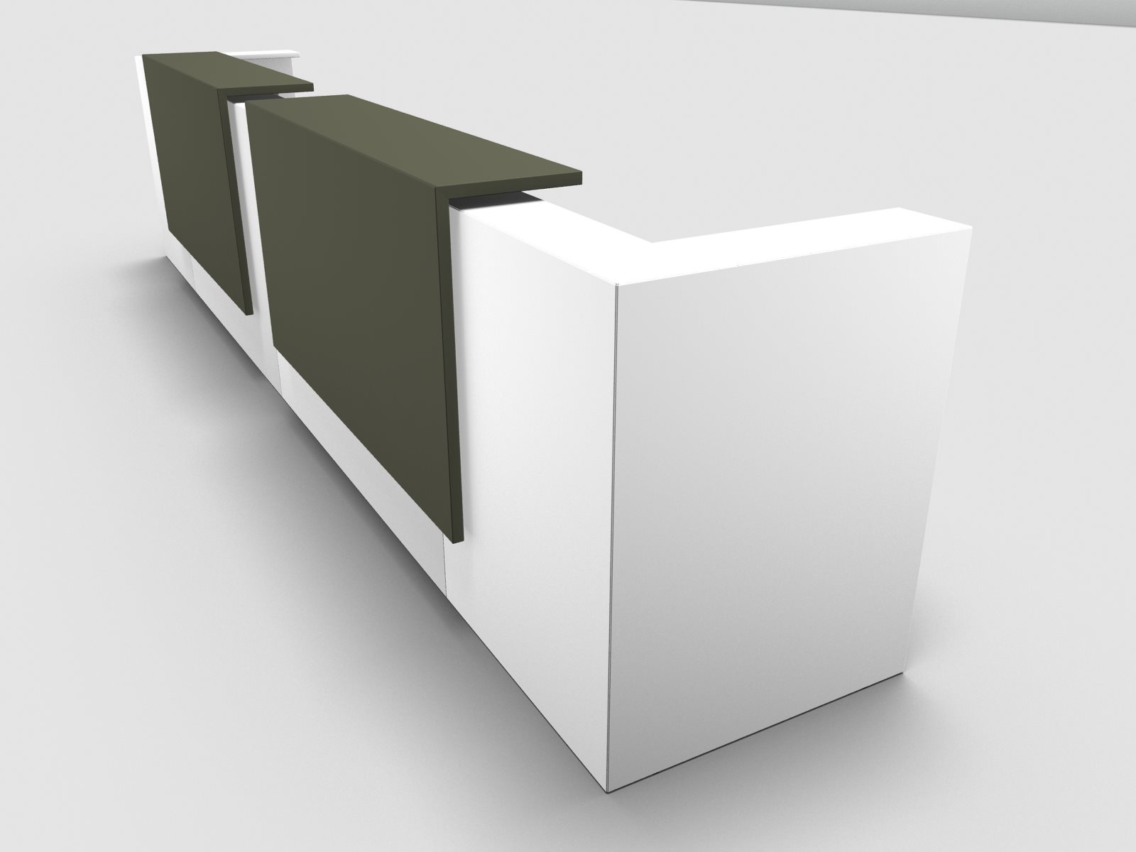 Quadrifoglio Z2 Empfangstheke C22 weiss 485cm Blende:Lack/gruen Gestell:silbern