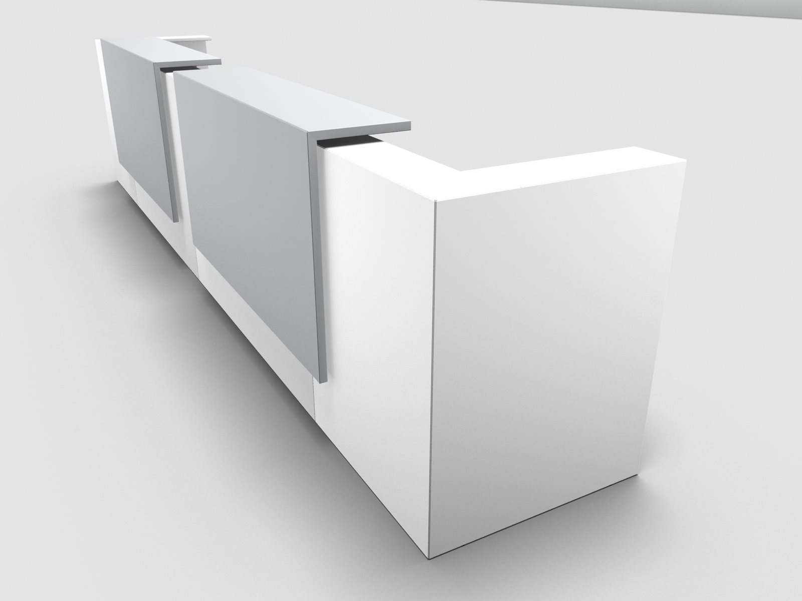 Quadrifoglio Z2 Empfangstheke C22 weiss 485cm Blende:Lack/grau Gestell:silbern