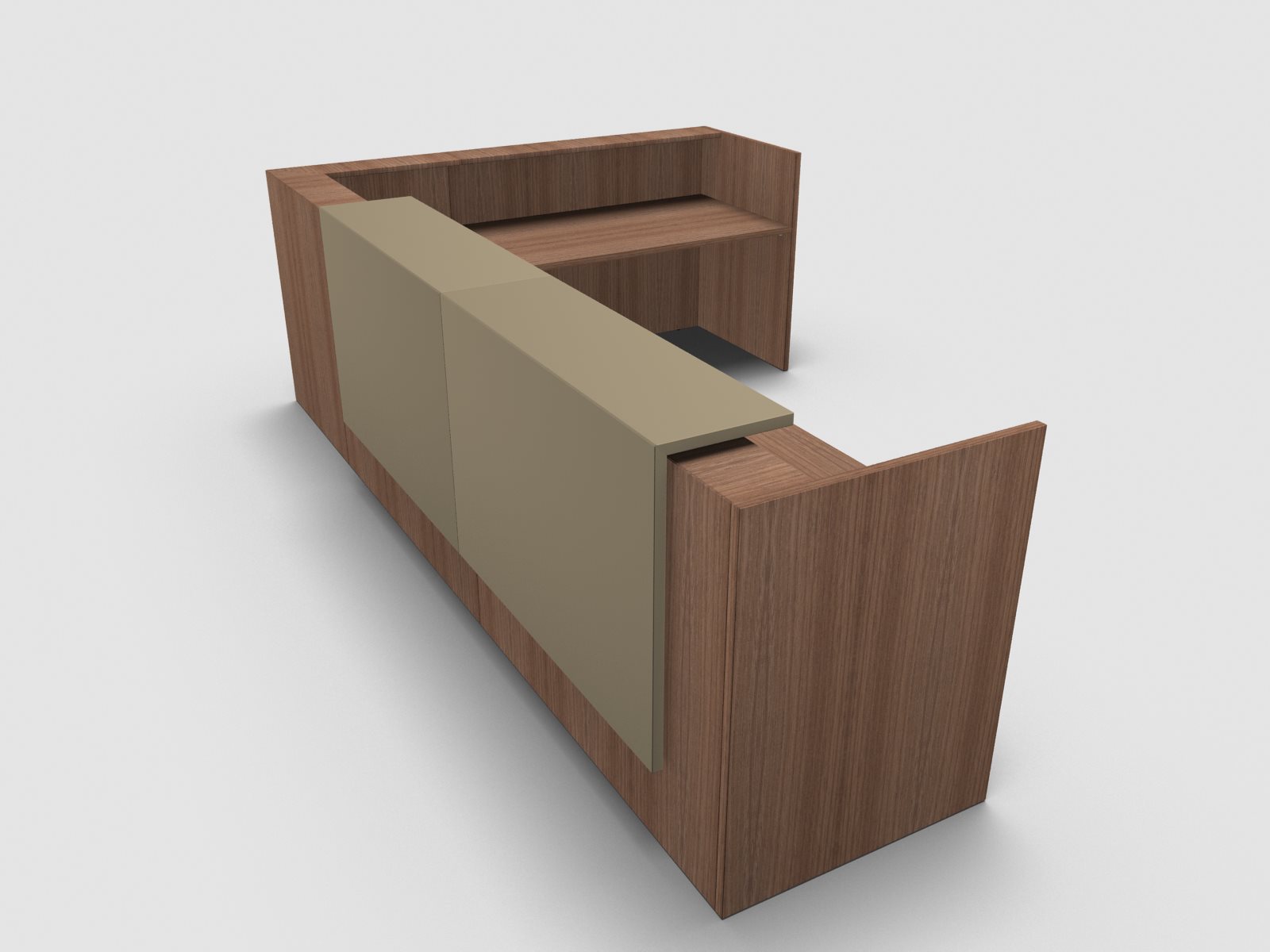 Quadrifoglio Z2 Empfangstheke C25 Walnuss 365x291cm Form:L Blende:Lack/beige Gestell:silbern