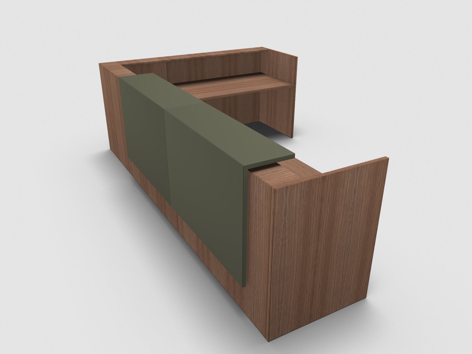 Quadrifoglio Z2 Empfangstheke C25 Walnuss 365x291cm Form:L Blende:Lack/gruen Gestell:silbern