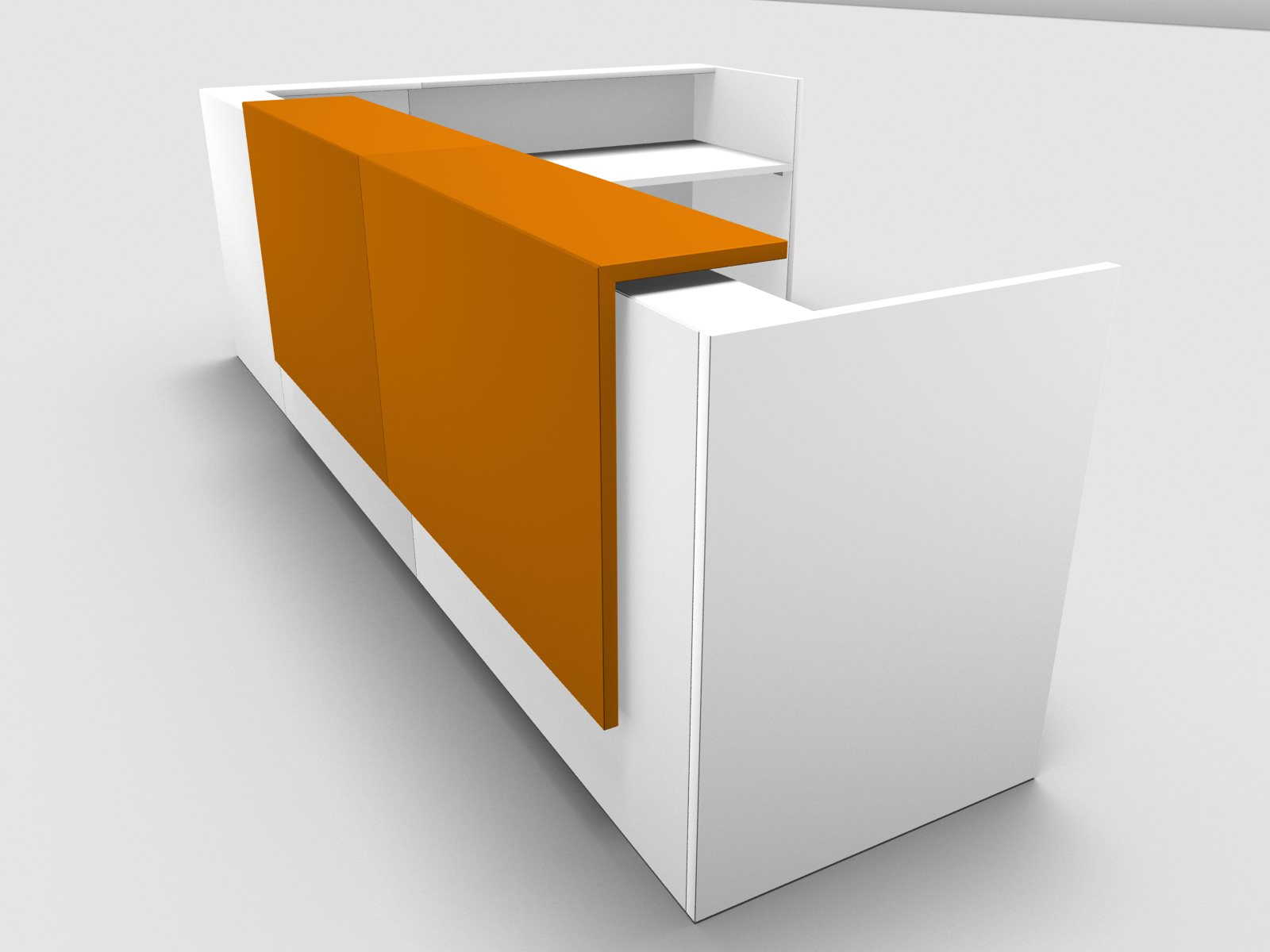 Quadrifoglio Z2 Empfangstheke C25 weiss 365x291cm Form:L Blende:Lack/orange Gestell:silbern