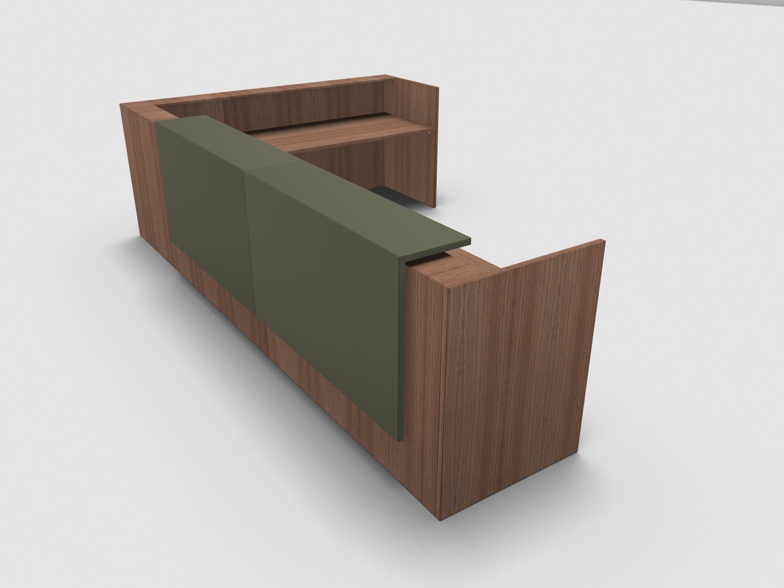 Quadrifoglio Z2 Empfangstheke C26 Walnuss 406x211cm Form:L Blende:Lack/gruen Gestell:silbern