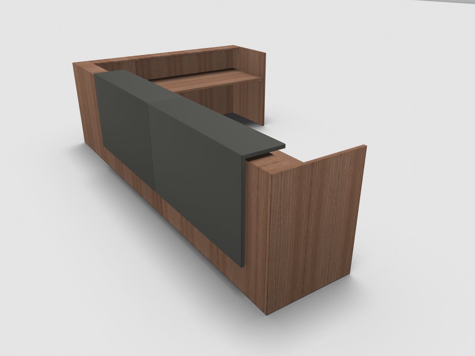 Quadrifoglio Z2 Empfangstheke C26 Walnuss 406x211cm Form:L Blende:Lack/umbra Gestell:weiss