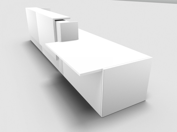Quadrifoglio Z2 Empfangstheke C46 weiss 466cm Tisch:links Blende:Wenge Gestell:weiss