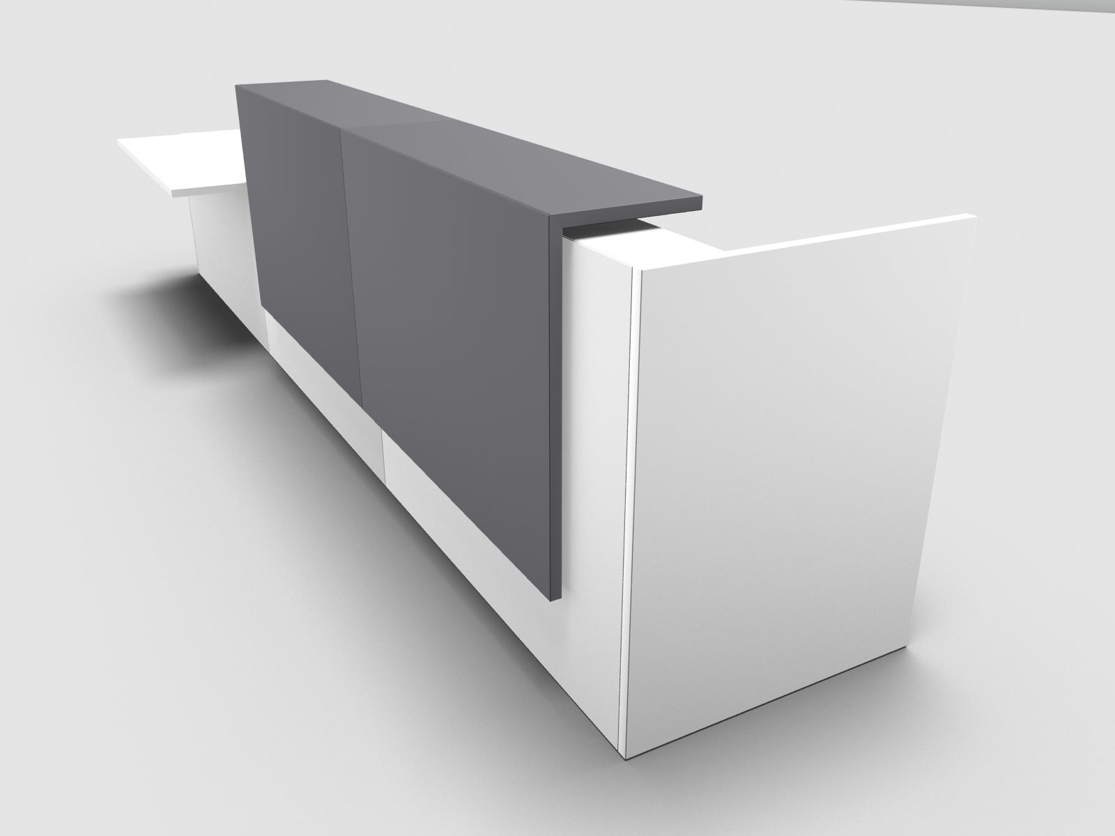 Quadrifoglio Z2 Empfangstheke C50 weiss 426cm Tisch:rechts Blende:Lack/umbra Gestell:silbern