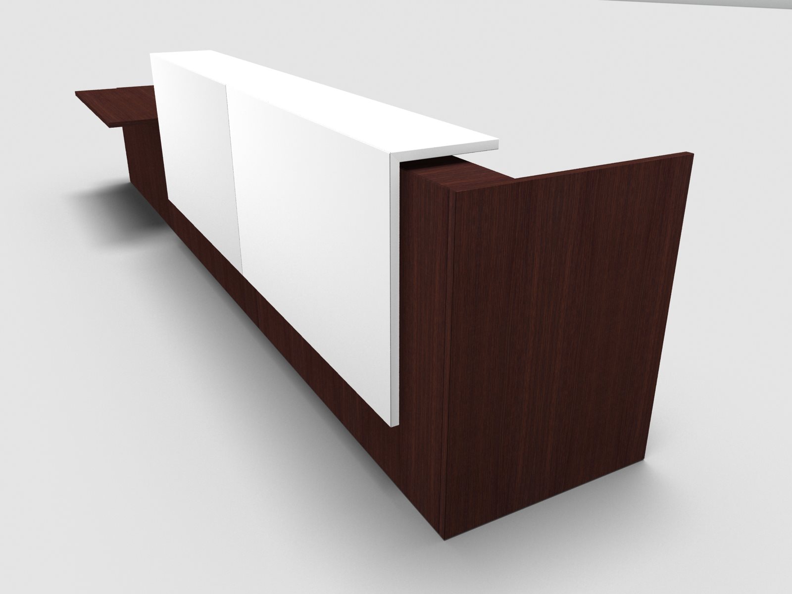 Quadrifoglio Z2 Empfangstheke C51 Walnuss 466cm Tisch:rechts Blende:Wenge Gestell:weiss