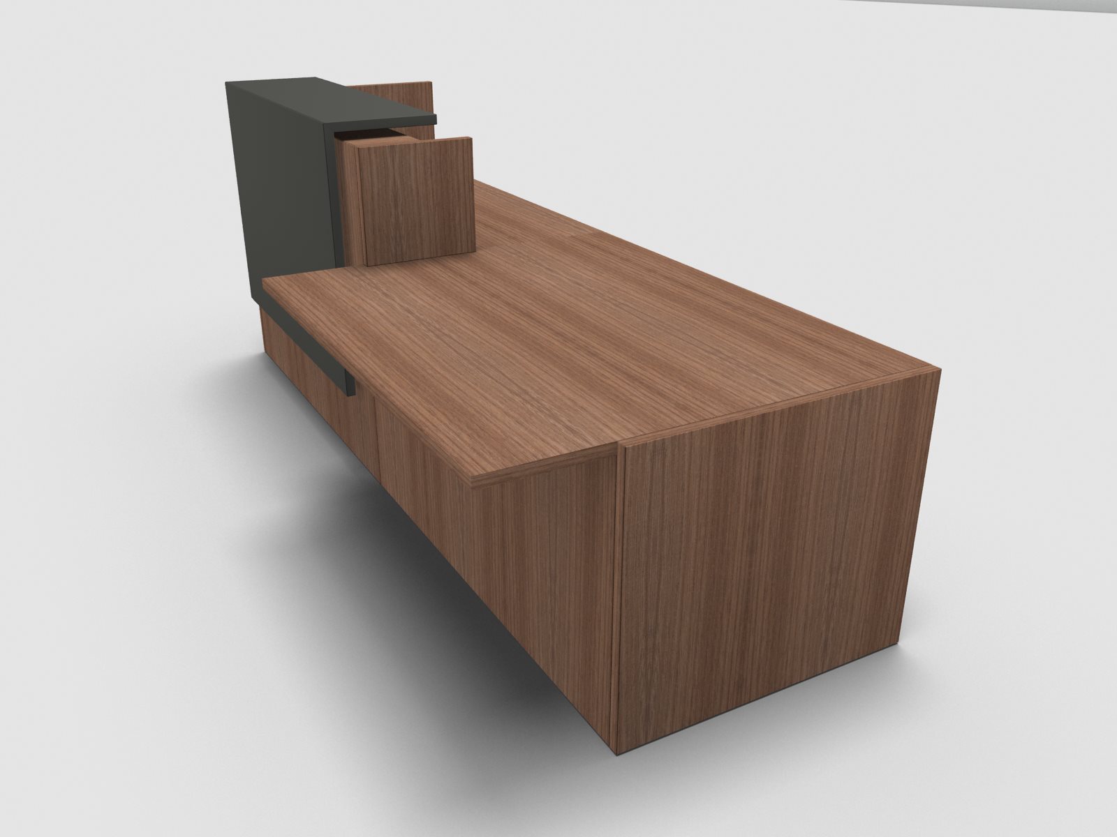 Quadrifoglio Z2 Empfangstheke C55 Walnuss 286cm Tisch:links Blende:Lack/umbra Gestell:weiss
