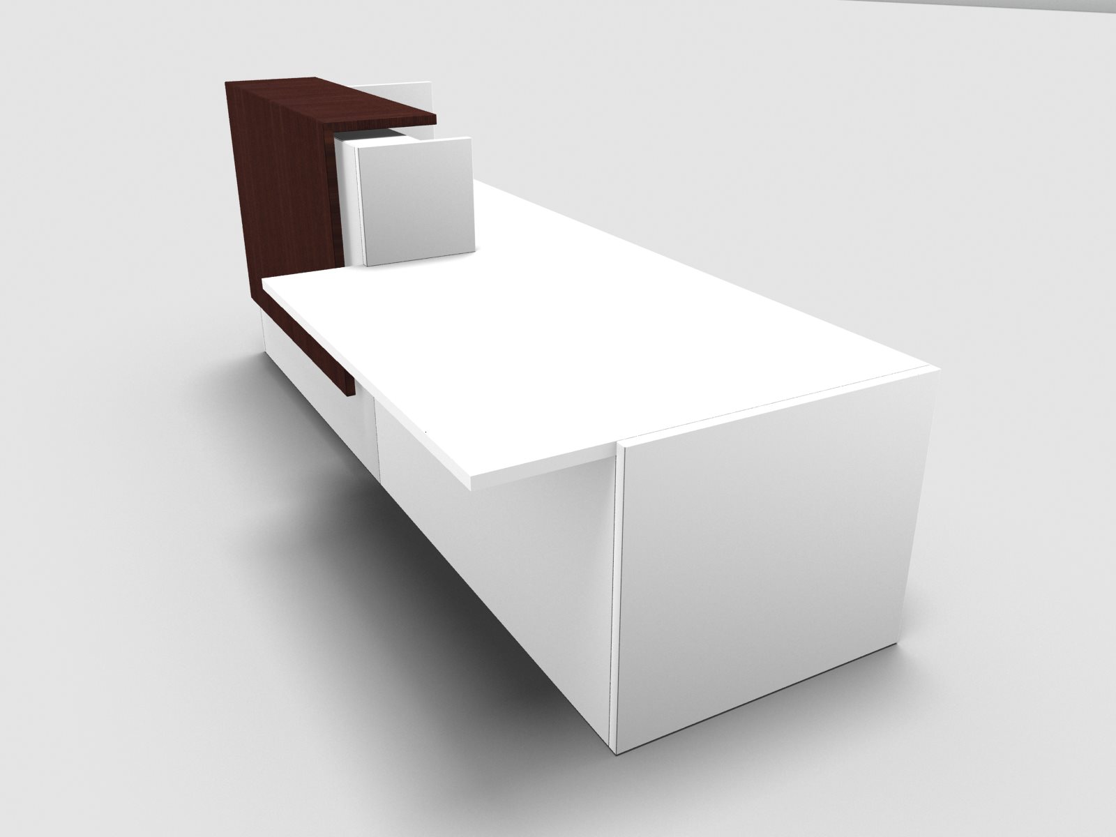 Quadrifoglio Z2 Empfangstheke C55 weiss 286cm Tisch:links Blende:Wenge Gestell:silbern