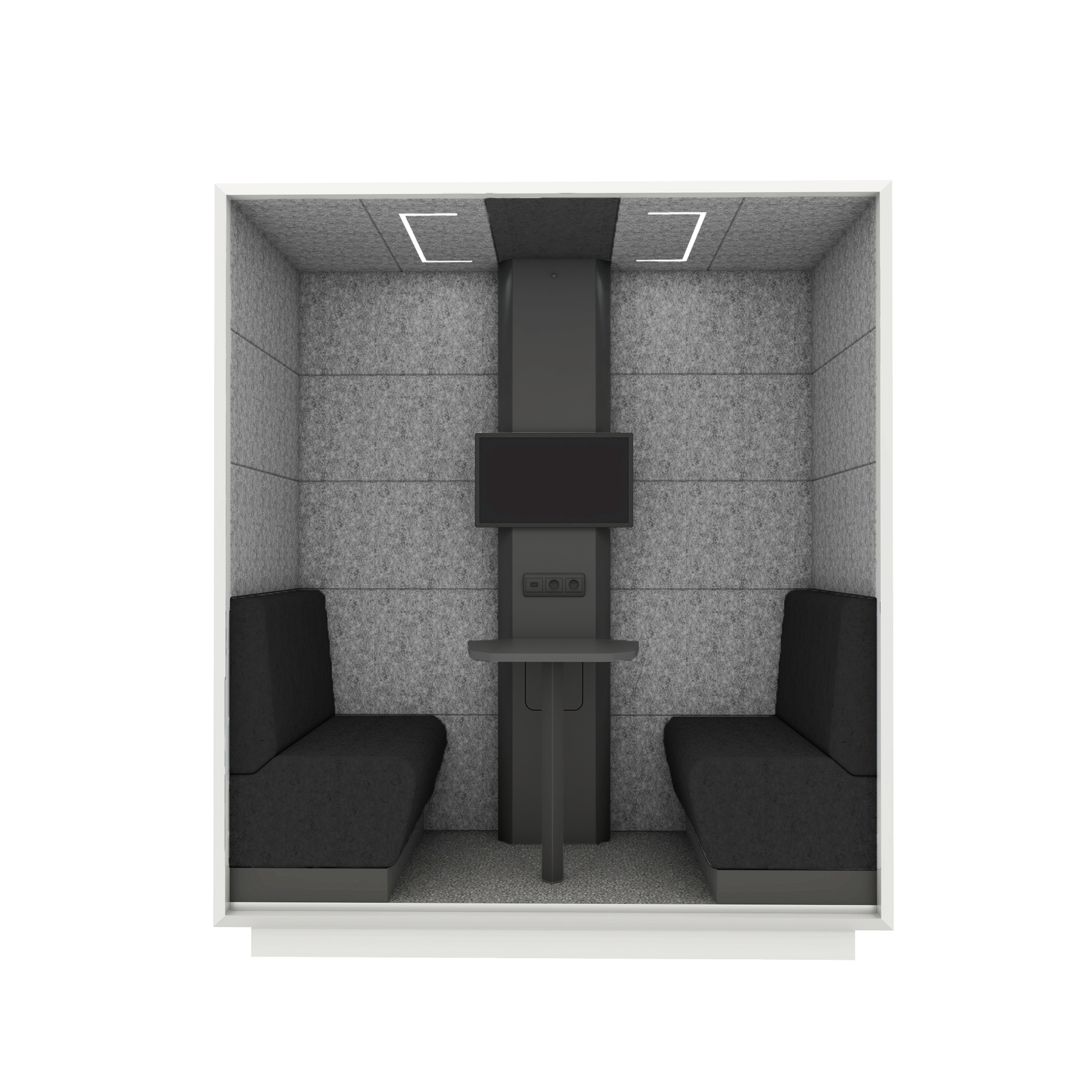 Akustisch gedämpfte Besprechungs Box, welche innen mit Akustikschaum gefüllten Polsterpaneelen ausgestattet ist, die mit Stoffbezug Blazer überzogen sind (Farbe nach Stoffkarte).
