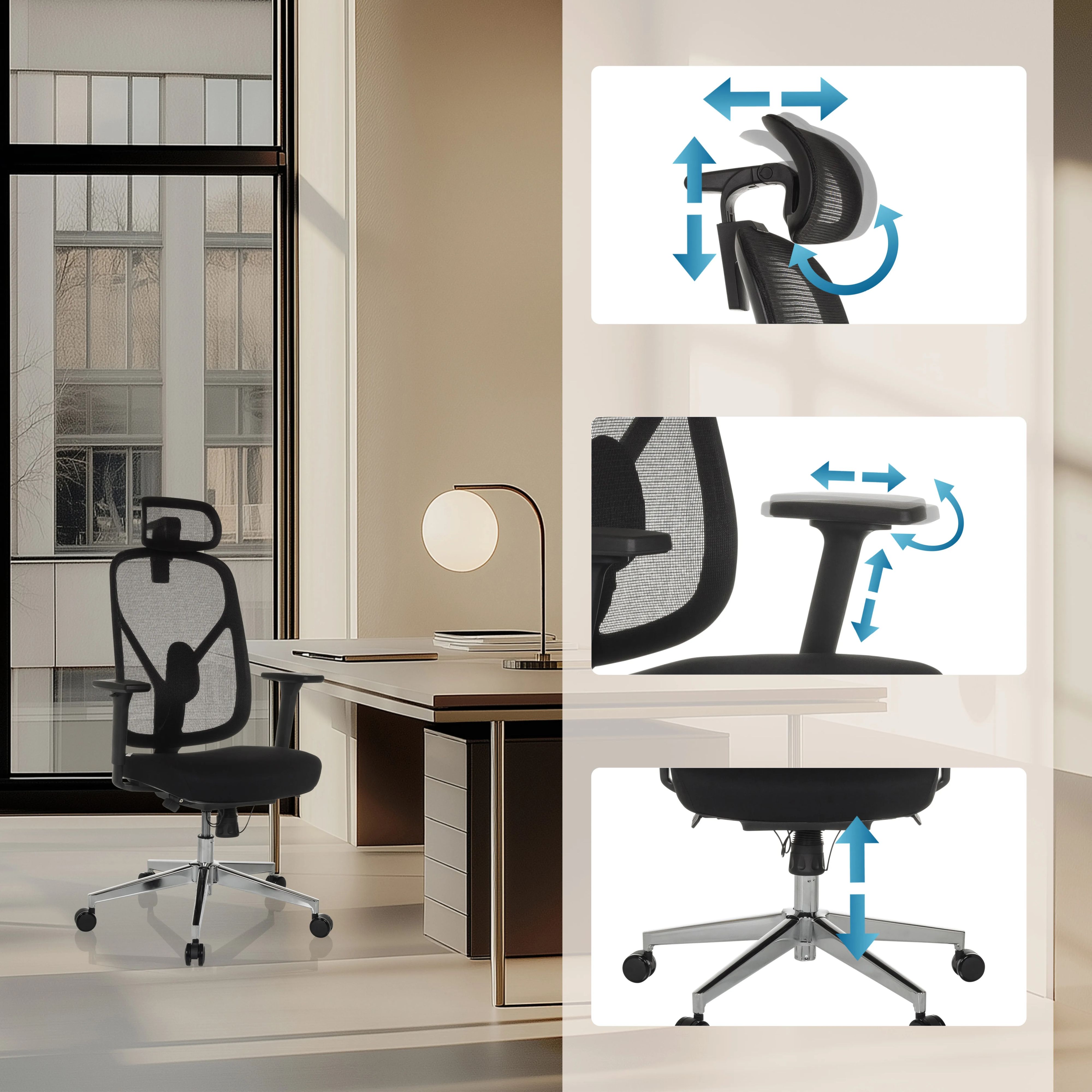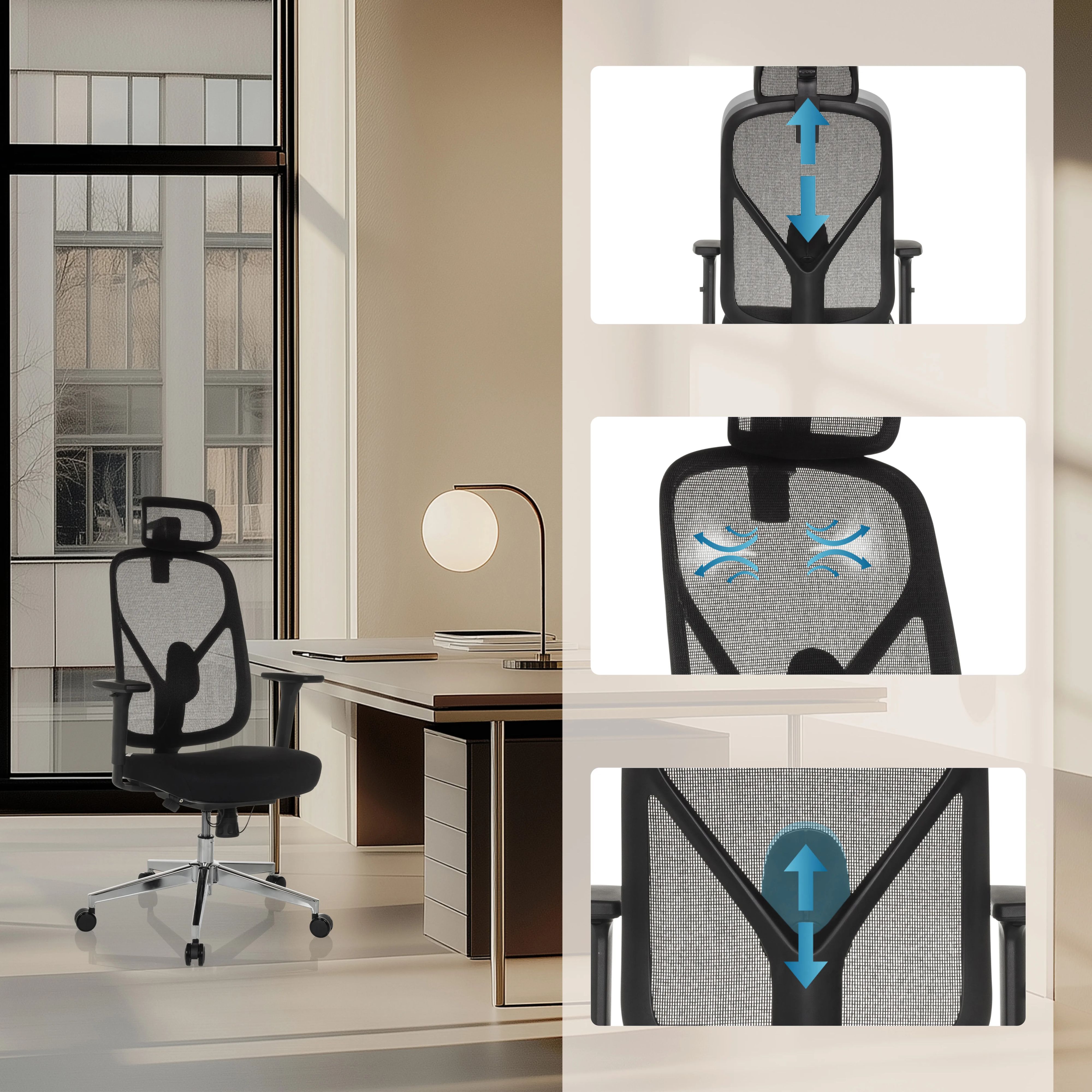 - Rückenlehnenhöhenverstellung und Sitztiefenverstellung für eine optimale Anpassung an die individuelle Körpergröße