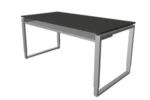 Schlanke, stabile Schreibtische mit C-Fuß in fünf Größen, zwei Farben oder mit Glasplatte. Festhöhe oder verstellbar.