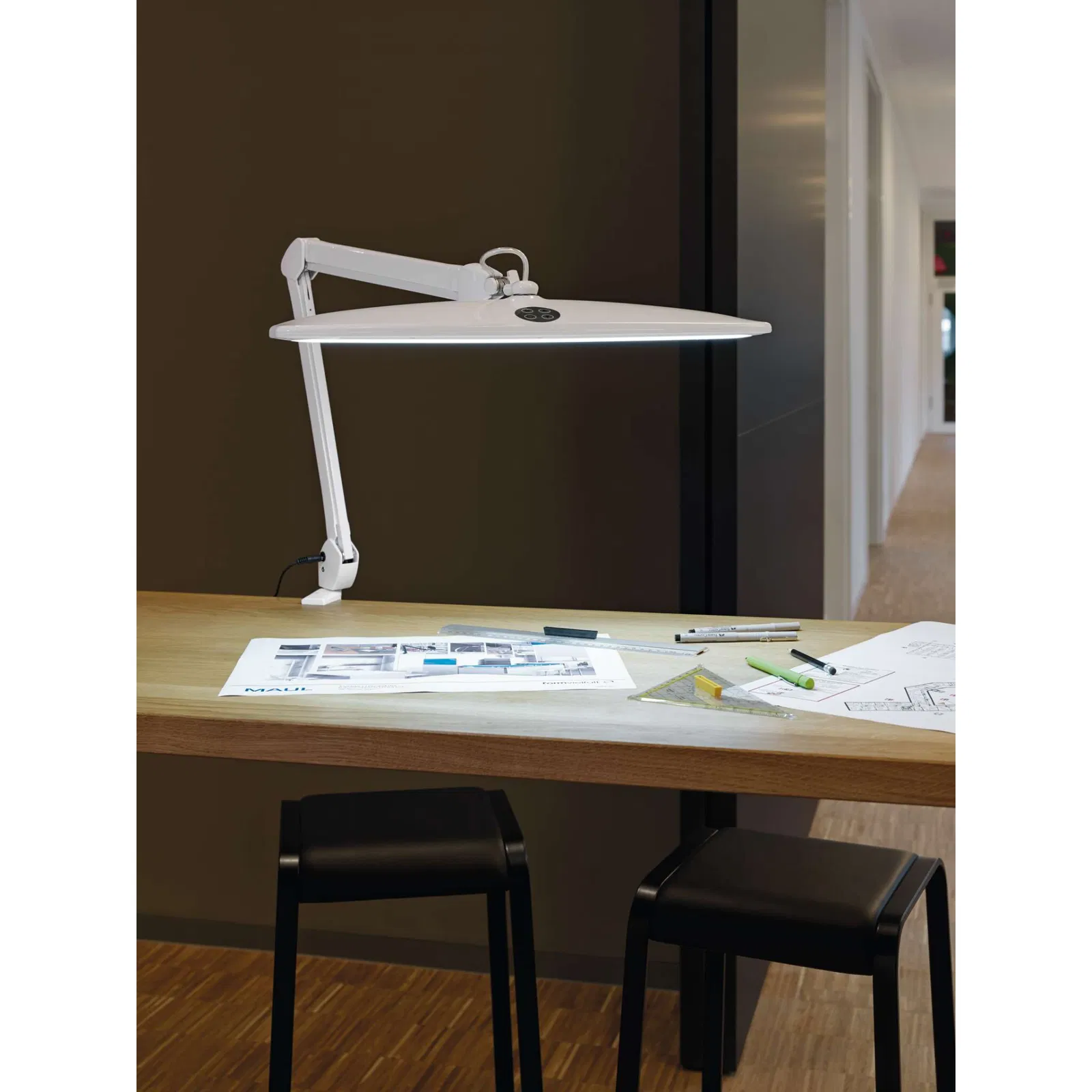MAUL Tischleuchte MAULwork LED dimmbar, mit Klemmfuß, Weiß